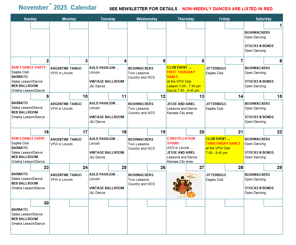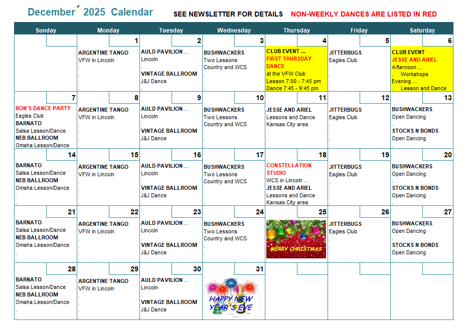 The Club's most current dance calendars are available via the